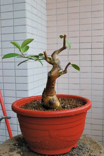 去年完全切除根部,重新長根;切除所有分枝,重新選芽。