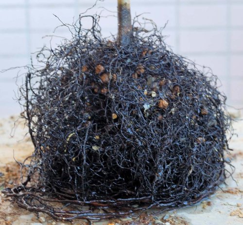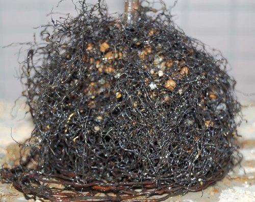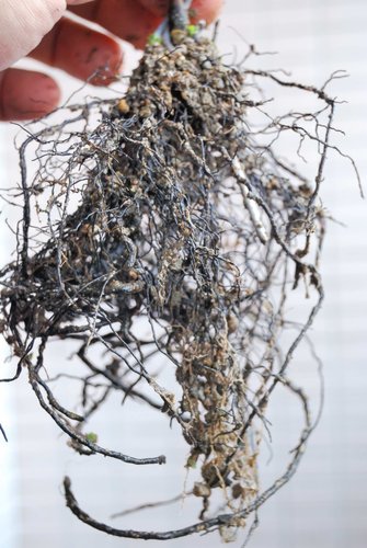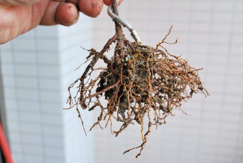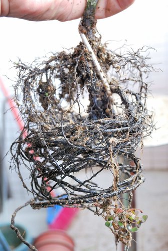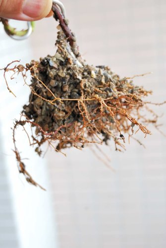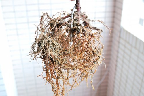 起盆後,根部生長旺盛,細根綿綿。