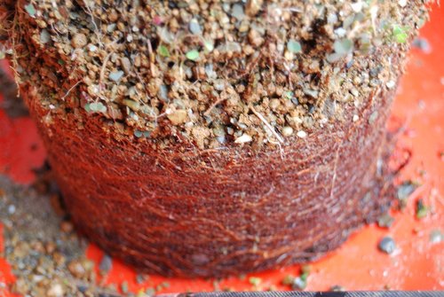 先以6mm山砂套在舊土外部,讓新根生長,於明年再清舊中土。