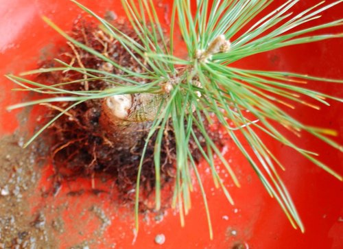 換土介質:100% 6mm山砂,期能使五葉松長出細根。
