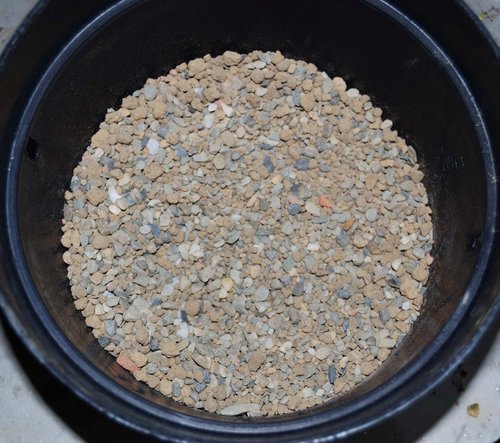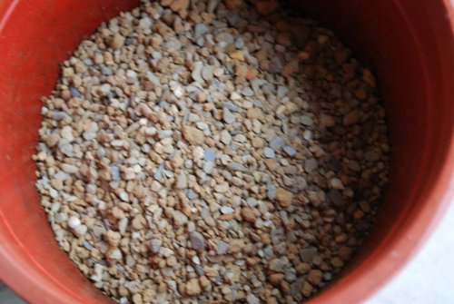 去年先換下半部舊土,填以6mm山砂,但因細砂滲透與充滿細縫,使排水變差。