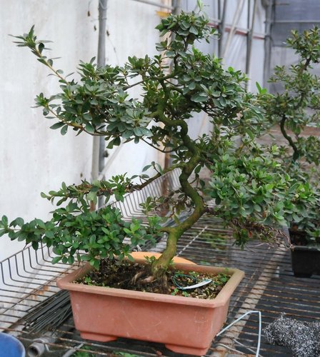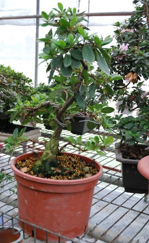 阿國的網室中,現已有大量的2~3年生的皋月杜鵑,直徑約在2cm左右,預計明年就可以大量供應大品與小品皋月杜鵑素材。