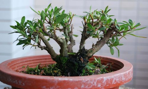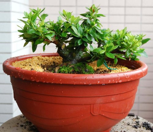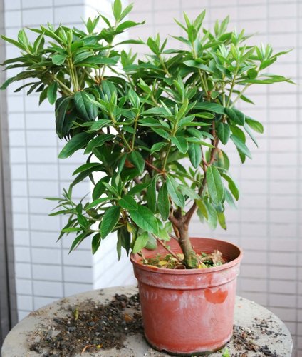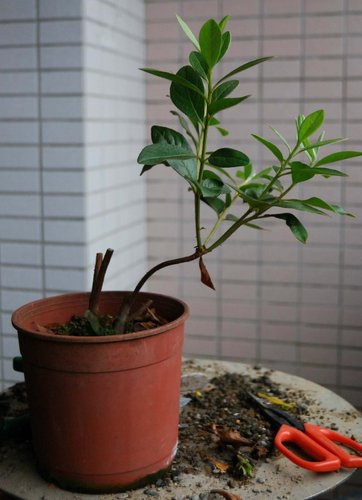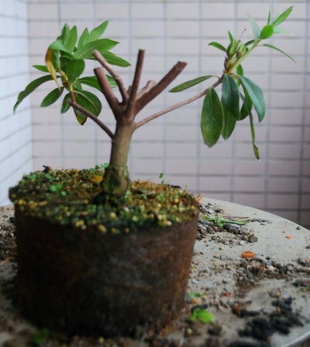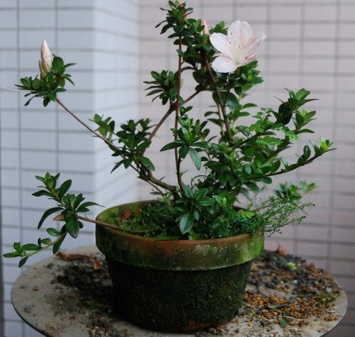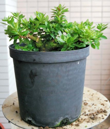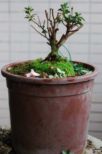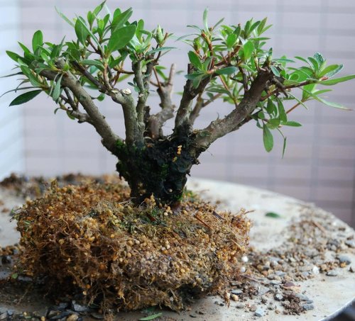 為年初向阿國買來的盆栽素材,目前正控制旁枝的生長勢以培養主幹,現於清明之前換土。