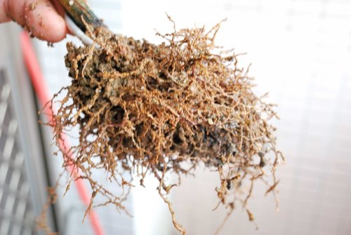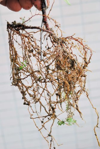 根部生長綿密,清除雜草根,修短長根與斷主根。