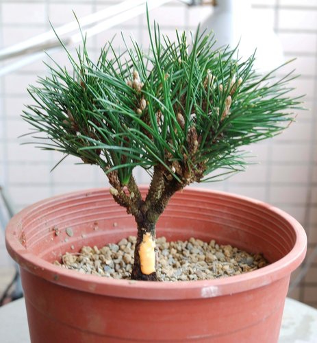 千壽丸為對生出芽,分枝處容易腫大,預計最近處理此腫大部位,餘枝允以接至其他台灣黑松。