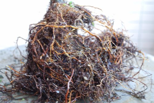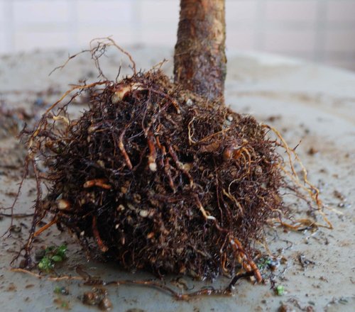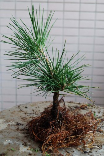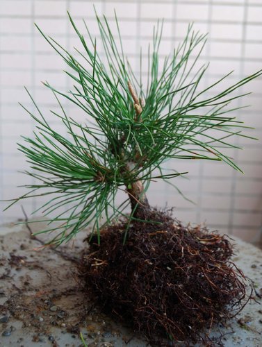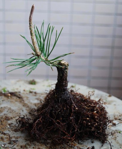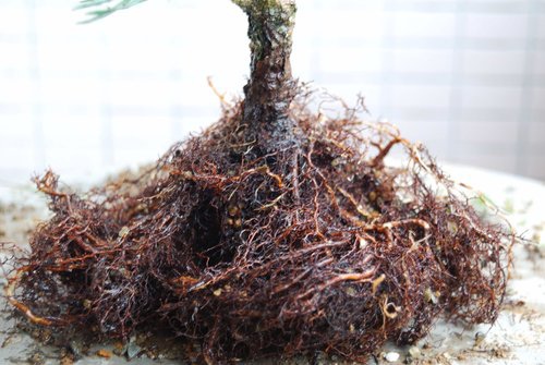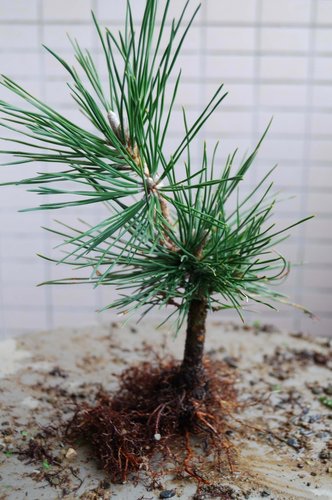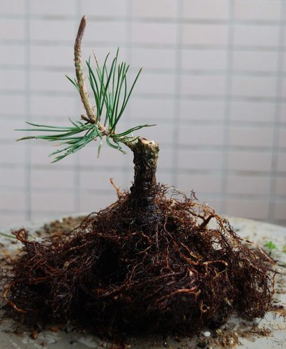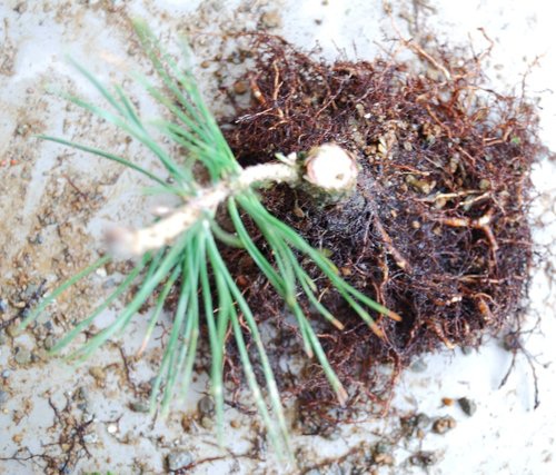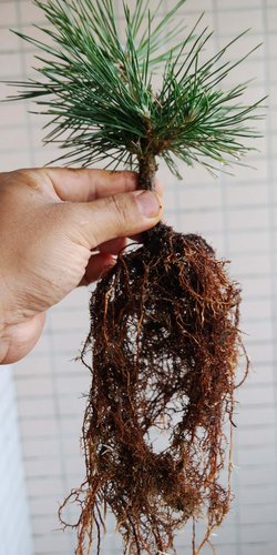 相對的三河黑松在同樣的狀況下,生長較遲緩,根部普通。