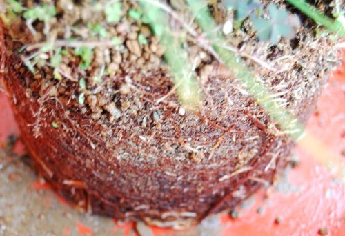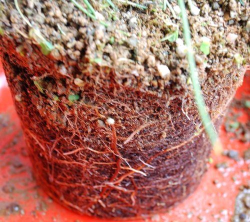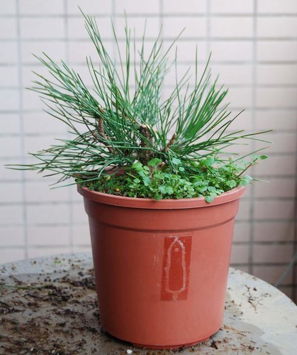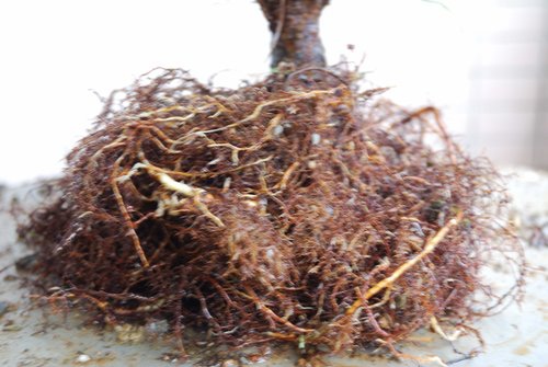 黑松在二分盆底砂中的生長,並不直接穿越盆底砂,