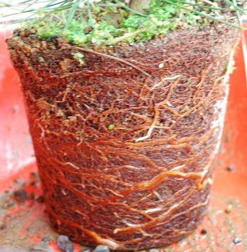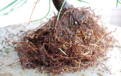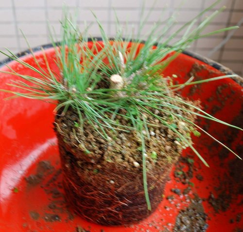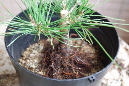 台灣黑松在7砂3土的用土下,生長旺盛,根部發達。